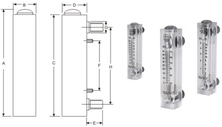 | GPM(液體) | LPM(液體) | Nm3/h(氣體) | A | B | C | D | E | F | G | H | |||